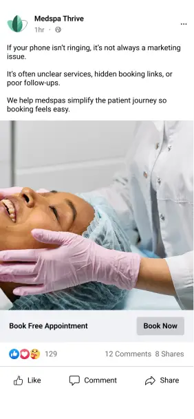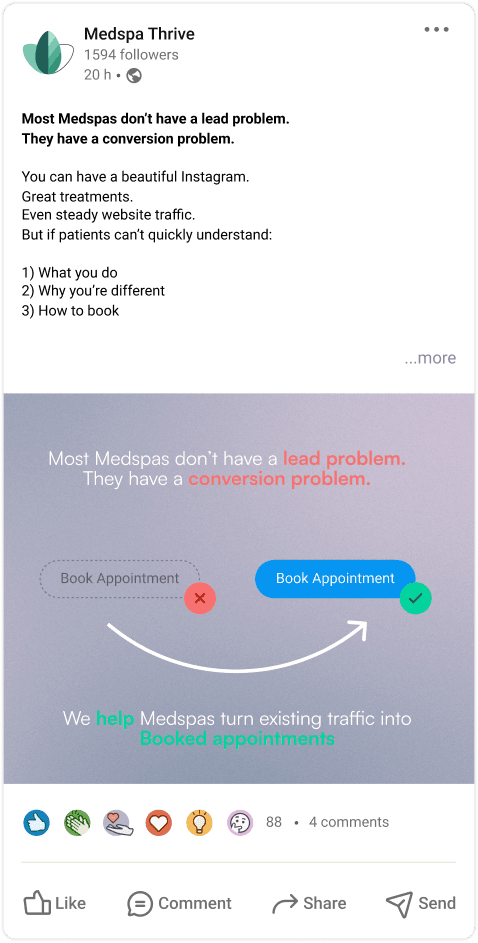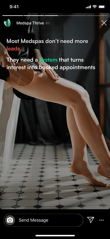 Educational, trust building content that showcases treatments, results, and expertise to turn scrollers into booked medspa patients