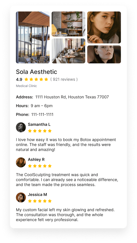 through Booking-first layouts, clear service paths, and self-serve scheduling remove friction and capture high-intent visitors.